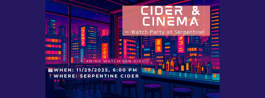 Join Anime Watch San Diego for an anime watch party at Serpentine Cider! FREE!